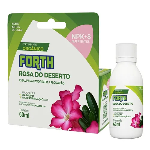 Chega de esperar por flores que nunca vêm! Com o Adubo Líquido Forth Rosa do Deserto, você oferece à sua planta a nutrição específica e balanceada que ela realmente precisa para prosperar. Desenvolvido por especialistas, sua fórmula de alta absorção garante resultados visíveis em pouco tempo.